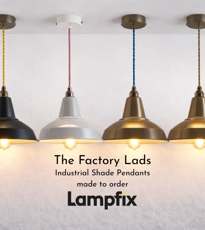 Industrial shade pendants with a matching ceiling rose and lampholder.